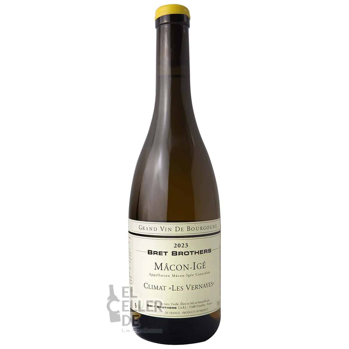 Mâcon-Igé Les Vernayes 2023 es un Chardonnay elegante y mineral elaborado por Bret Brothers en el corazón del sur de Borgoña. Procede de un viñedo orientado al este a 300 m de altitud, donde las vides crecen en suelos arcillo-calcáreos que aportan frescura y precisión. Un vino vibrante, seductor y fiel al terroir.